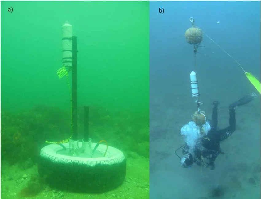 Tags that emit acoustic (sound) signals underwater are attached to the animals. Those tags can then be detected by receiver stations as the animal passes by. Receivers are moored to the seabed and attached to Buoys, which are near or on the surface.