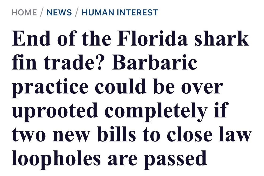media & News Laurel Irvine 3/2/20 Laurel Irvine 3/2/20 Guy Harvey: A “Yes” Vote on Shark Fin Ban is a Vote for Florida Jobs - Florida Politics Read More Laurel Irvine 2/20/20 Laurel Irvine 2/20/20 Florida Bill Moves One Step Closer to Ending Shark Fin Trade Throughout the State - CBS 12 Read More Laurel Irvine 2/19/20 Laurel Irvine 2/19/20 Ban On Selling, Exporting Shark Fins Closer To Passing In Florida - WJCT Read More Laurel Irvine 2/5/20 Laurel Irvine 2/5/20 1,400 Pounds of Shark Fins Seized at Miami Port - Time Magazine Read More Laurel Irvine 2/4/20 Laurel Irvine 2/4/20 Lawmakers Seek to End Florida's Key Role in Shark Fin Trade - AP News Read More Laurel Irvine 1/30/20 Laurel Irvine 1/30/20 Stop Finning European Union Initiative Kick Off at BOOT Düsseldorf Read More Laurel Irvine 1/16/20 Laurel Irvine 1/16/20 Bill Banning Sale of Shark Fins Swims to Final House Committee - Florida Politics Read More Laurel Irvine 1/5/20 Laurel Irvine 1/5/20 10 Monumental Animal Welfare Victories and Milestones of 2019 - One Green Planet Read More Laurel Irvine 12/12/19 Laurel Irvine 12/12/19 House Panel Approves Bill Banning Shark Fin Trade - Florida Politics Read More Laurel Irvine 12/3/19 Laurel Irvine 12/3/19 Divers at DEMA 2019 Have Spoken - Jordan K. Synder Read More Laurel Irvine 11/21/19 Laurel Irvine 11/21/19 Conservation Spotlight: Shark Allies - Sport Diver Magazine Read More Laurel Irvine 11/14/19 Laurel Irvine 11/14/19 End of the Florida Shark Fin Trade? - Meaww Read More Newer Posts Older Posts